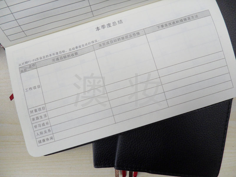 最后,另外这本季度版本的工作日志也避免了拖沓,每三个月通过更换笔记本,调整年度工作目标,通过“年度一览表”和“绩效考核评分表”的重新填写,让团队清晰各自岗位职责,上下一心排除万难,俗话说的好,心有理想,春暖花开,在这里,纪大卫与你和团队在来年一起成为“日志控”,准备好一支红绿黑的细细的0.3水笔,将记载你我新的一年的奋斗,澳妆网预祝大家新年快乐,贵客盈门,心想事成,盆满钵满!一起加油!